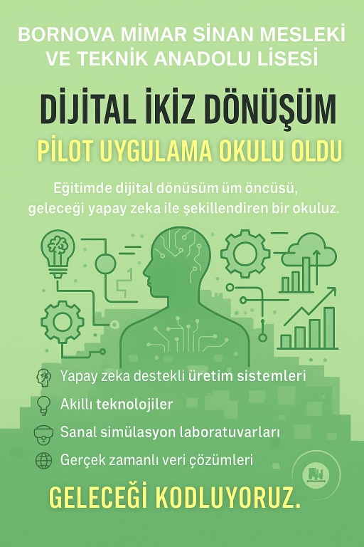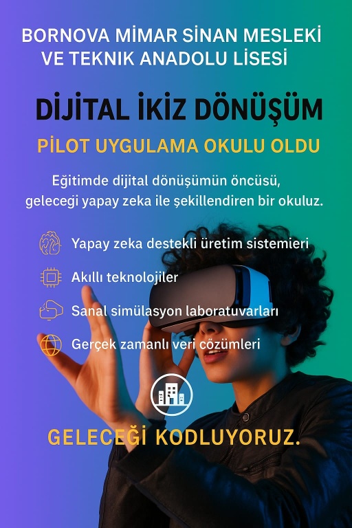 Okulumuz Bornova Mimar Sinan Mesleki ve Teknik Anadolu Lisesi "Dijital İkiz Dönüşüm" Pilot Uygulama Okulu Oldu!